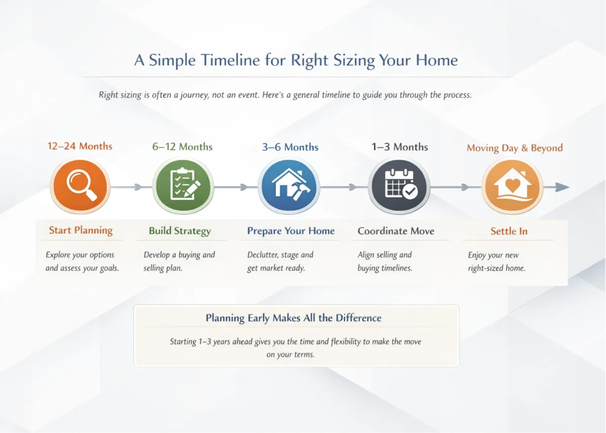 Right Sizing isn’t about chasing a bigger house or squeezing into a smaller one. It’s about choosing a home that fits your current stage of life; financially, physically, and emotionally.
